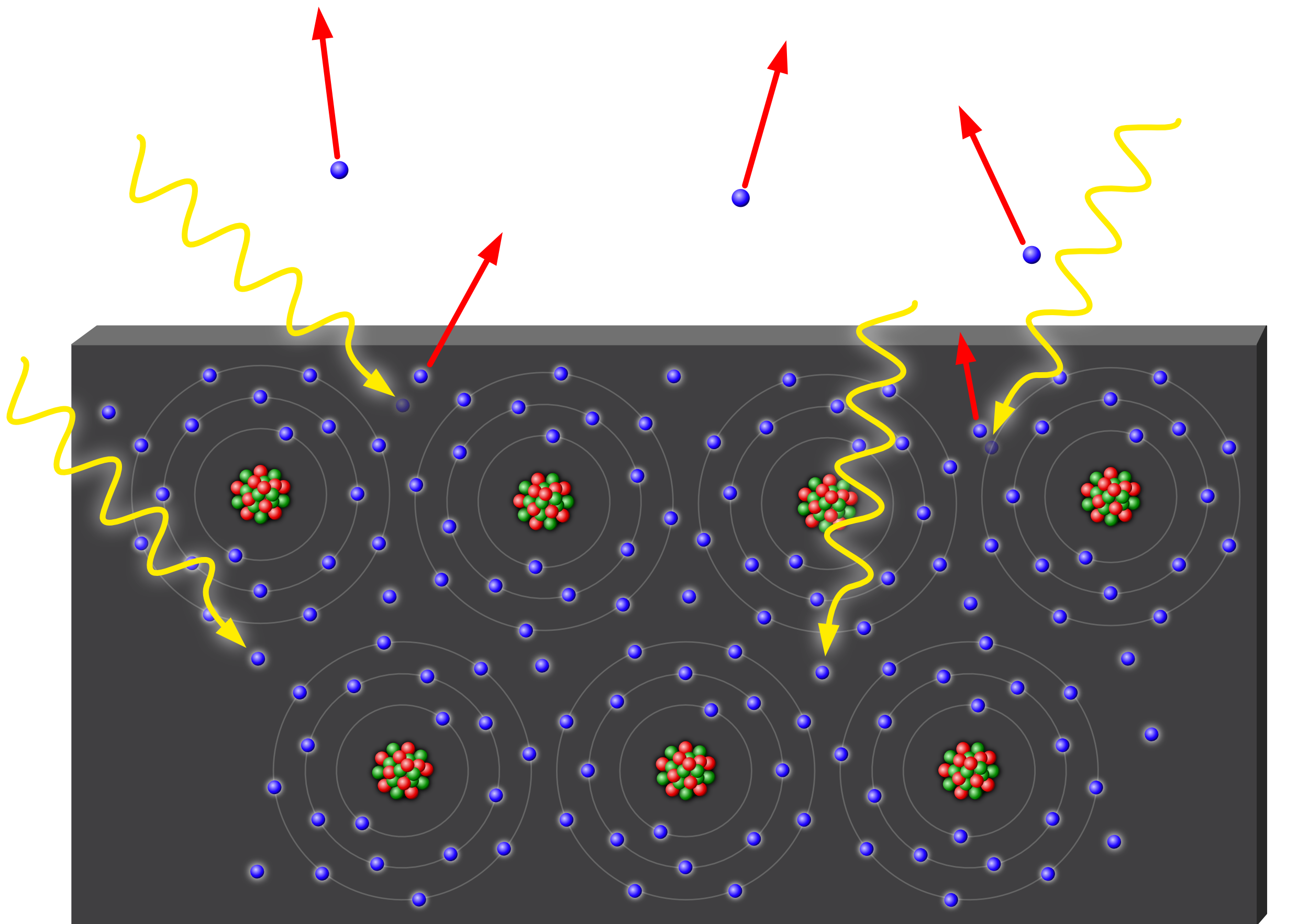 Als Photoeffekt bezeichnet man das Herauslösen von Elektronen aus einer Metall- oder Halbleiteroberfläche durch Bestrahlung. Die Energie der herausgelösten Elektronen ist unabhängig von der Lichtintensität diese bestimmt nur die Anzahl der herausgelösten Elektronen. Der Effekt konnte von Albert Einstein erklärt werden, wenn das Licht als Teilchen (Photon) betrachtet wird