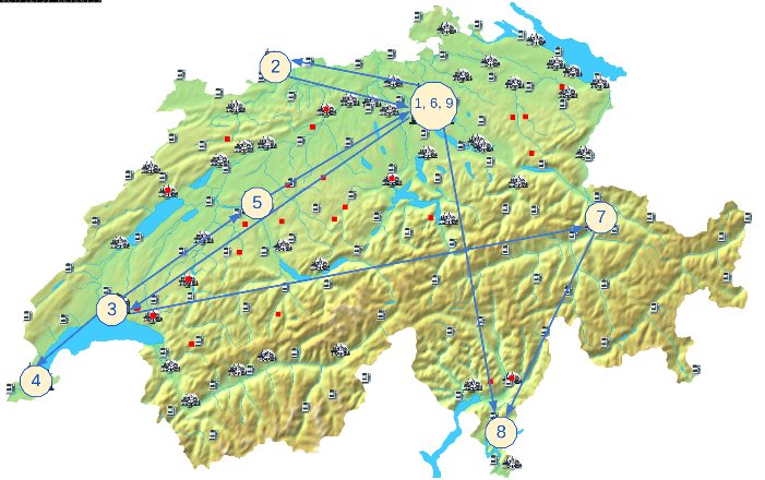This map shows a typical day in our Swiss logistics simulation, where trucks connect warehouses across the country. It illustrates how our BRIDGE project uses AI to make supply chains more reliable, efficient, and resilient to disruptions.