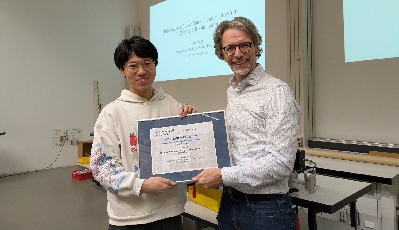 for winning the Soluyanov Prize 2025 for the best theoretical master thesis on 'The shapes of low mass galaxies at z>6 in FIREbox HR simulation'