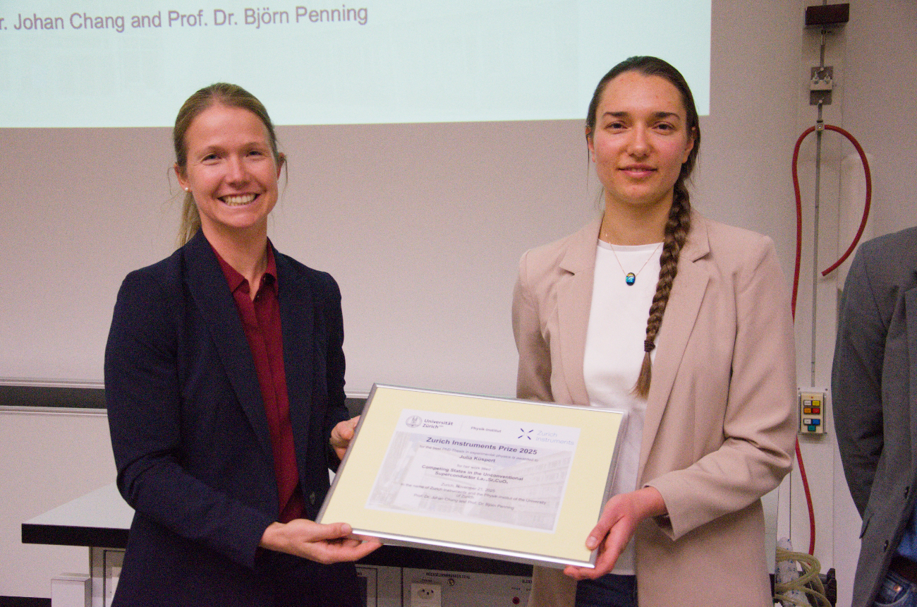 for winning the Zurich Instruments Award 2025 for the best experimental PhD thesis on 'Competing States in the Unconventional Superconductor La2-xSrxCuO4'